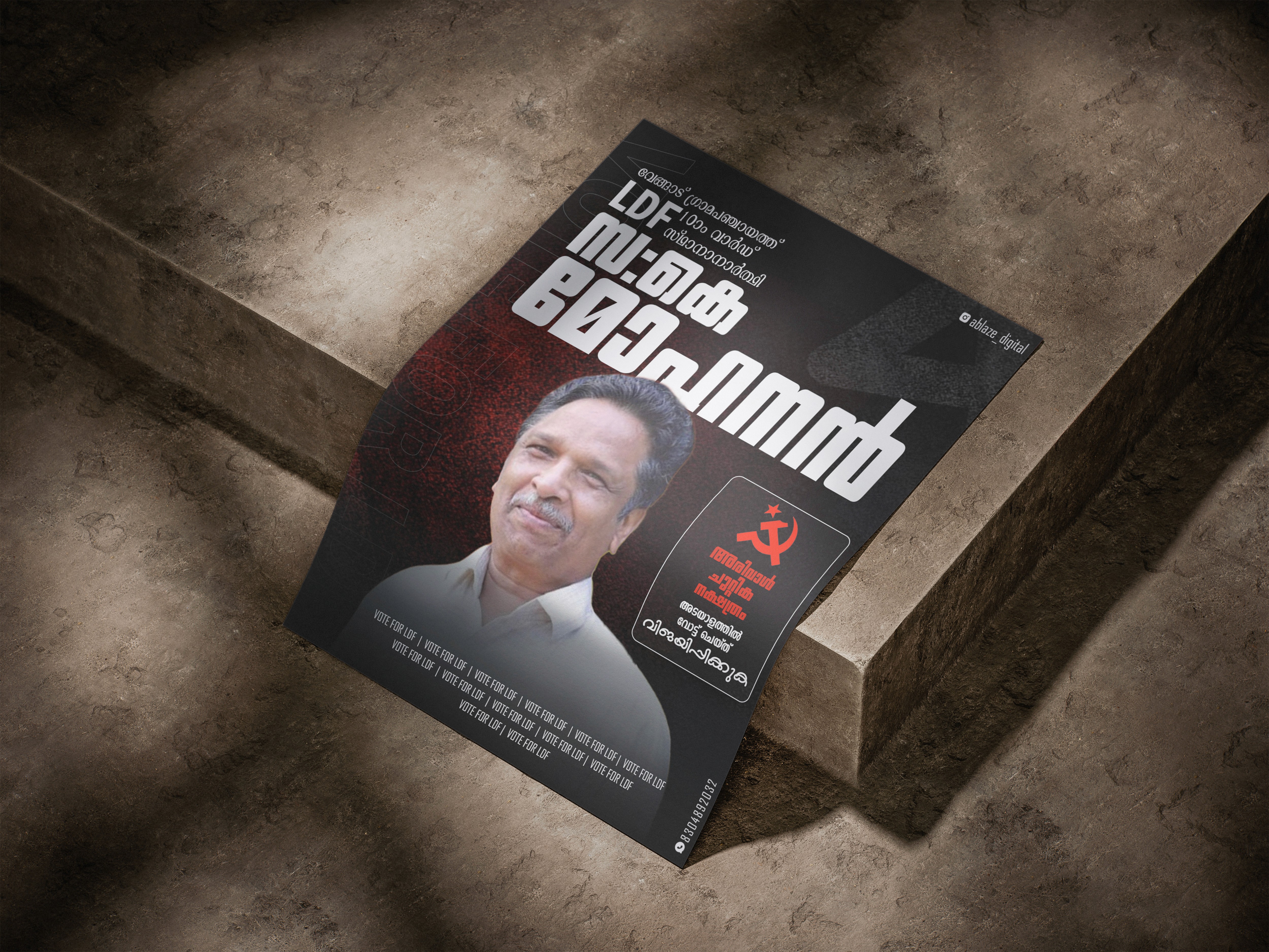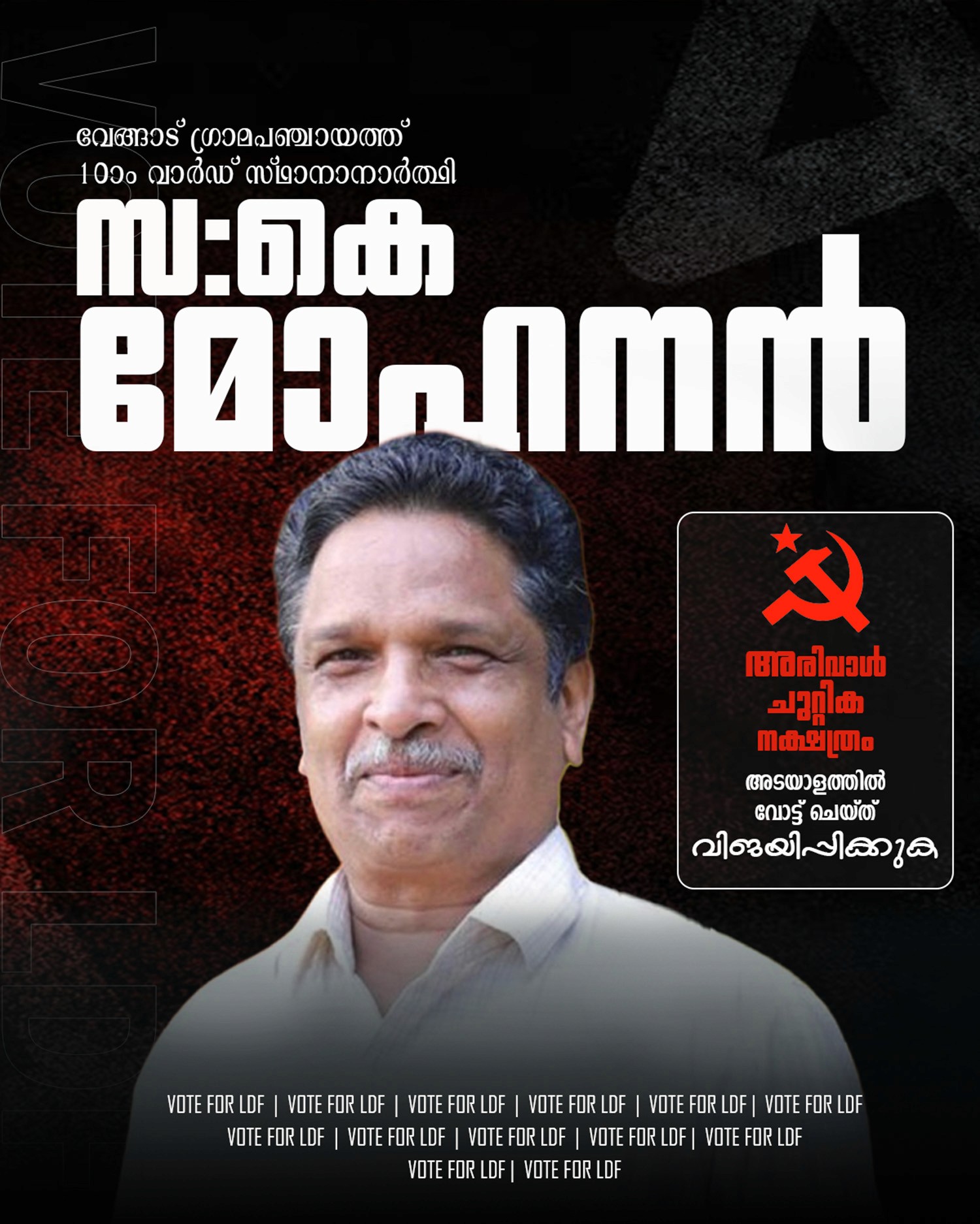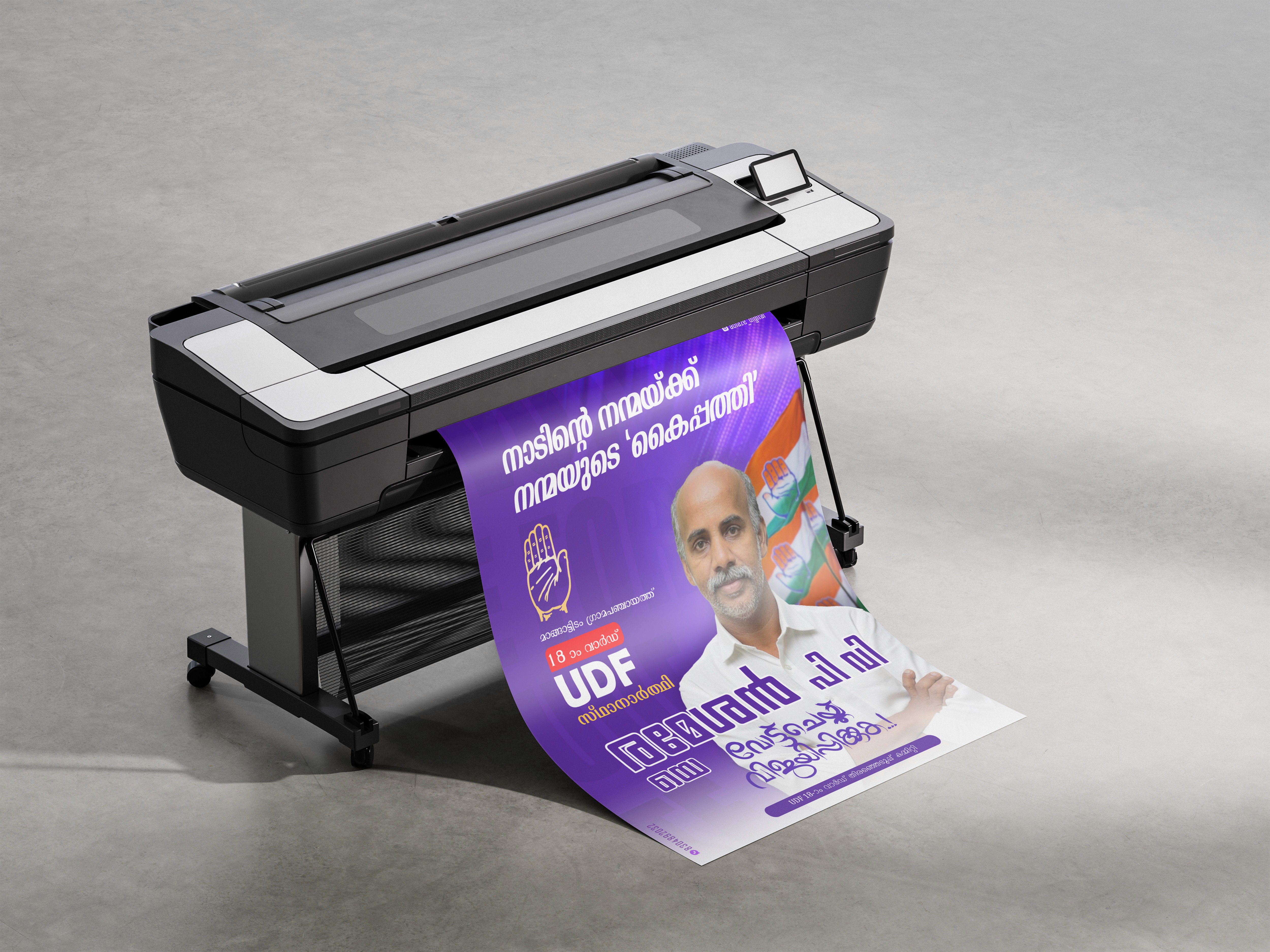 Capturing the vibrant pulse of Kerala's 2025 local body elections, these posters utilize iconic alliance symbols—the LDF's red hammer and sickle, the UDF's hand, and the NDA's lotus—to mobilize voter confidence across the state. The designs blend traditional political imagery with modern, high-impact layouts to reflect the diverse regional nuances of all 1,200 local bodies.