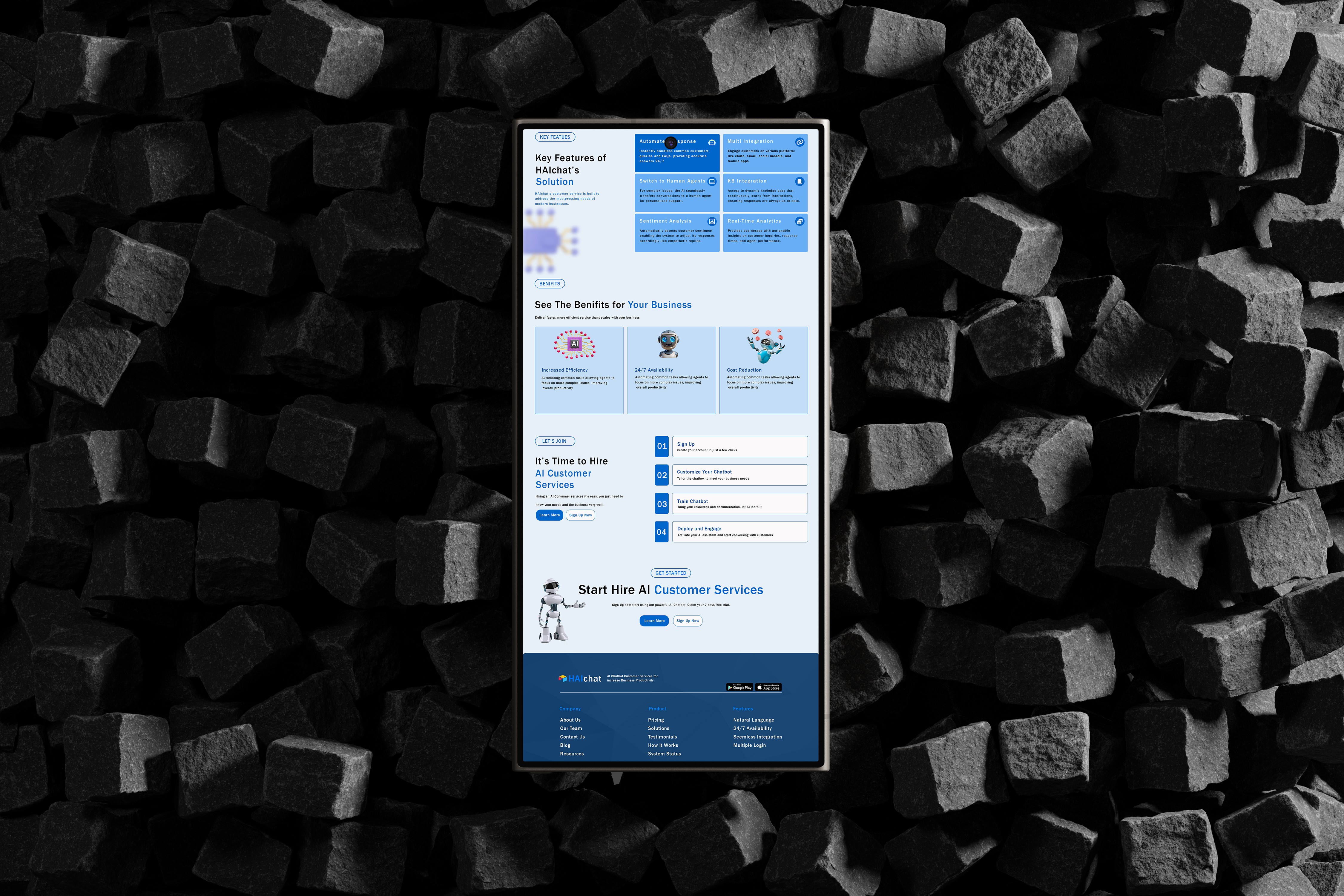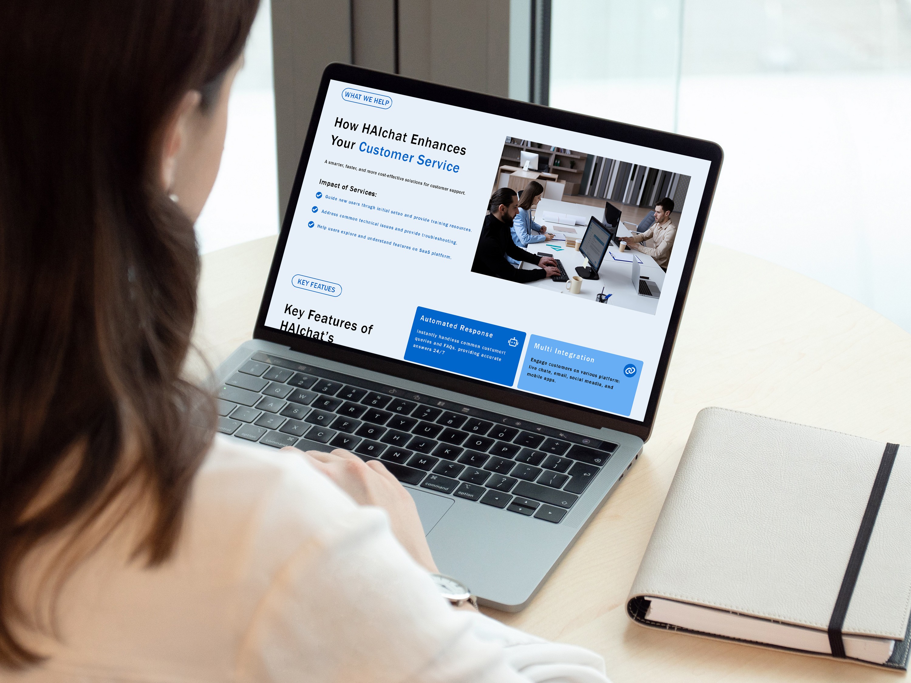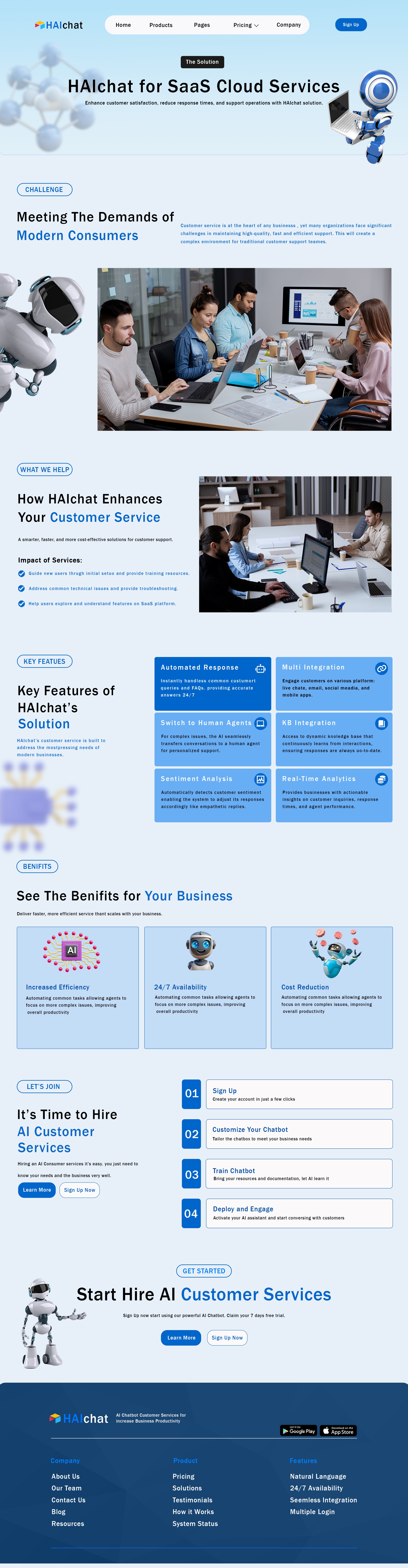 This website launch page design focuses on the intersection of AI technology and human-centric business solutions. The layout is professional, clean, and optimized for a "Problem-Solution" narrative.